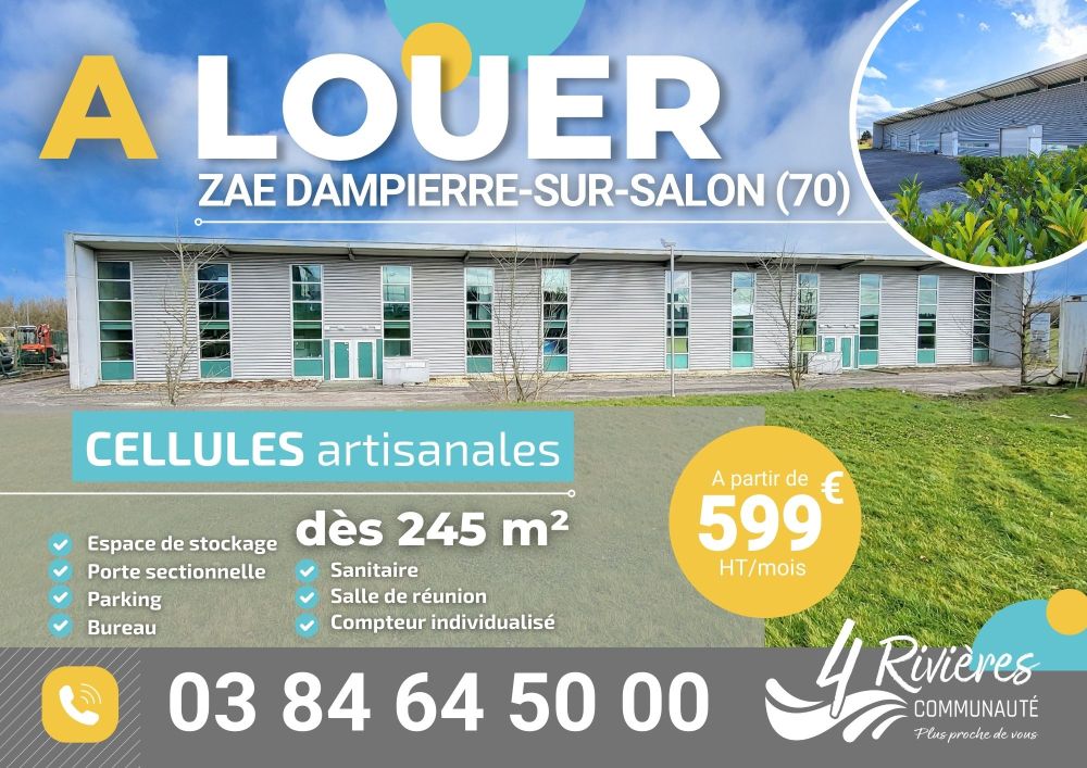 L’Hôtel d’Entreprises de Dampierre/Salon est situé sur la ZAE Charles Gauthier. Il comprend 4 cellules commerciales, 3 de 245 m² et une de 360 m².